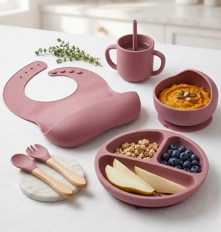 Jemná ružová farba pôsobí moderne, nežne a ľahko sa hodí do každej domácnosti. Set je navrhnutý tak, aby podporoval samostatnosť dieťaťa pri jedení a rodičom zároveň uľahčil každodennú rutinu.